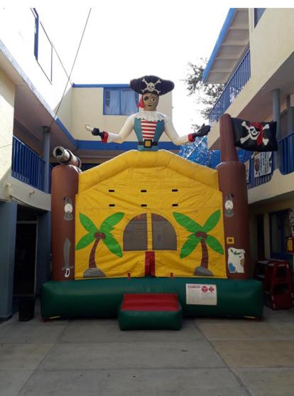 puedes usarla en alberca o pasto medidas 3.5*5 metros